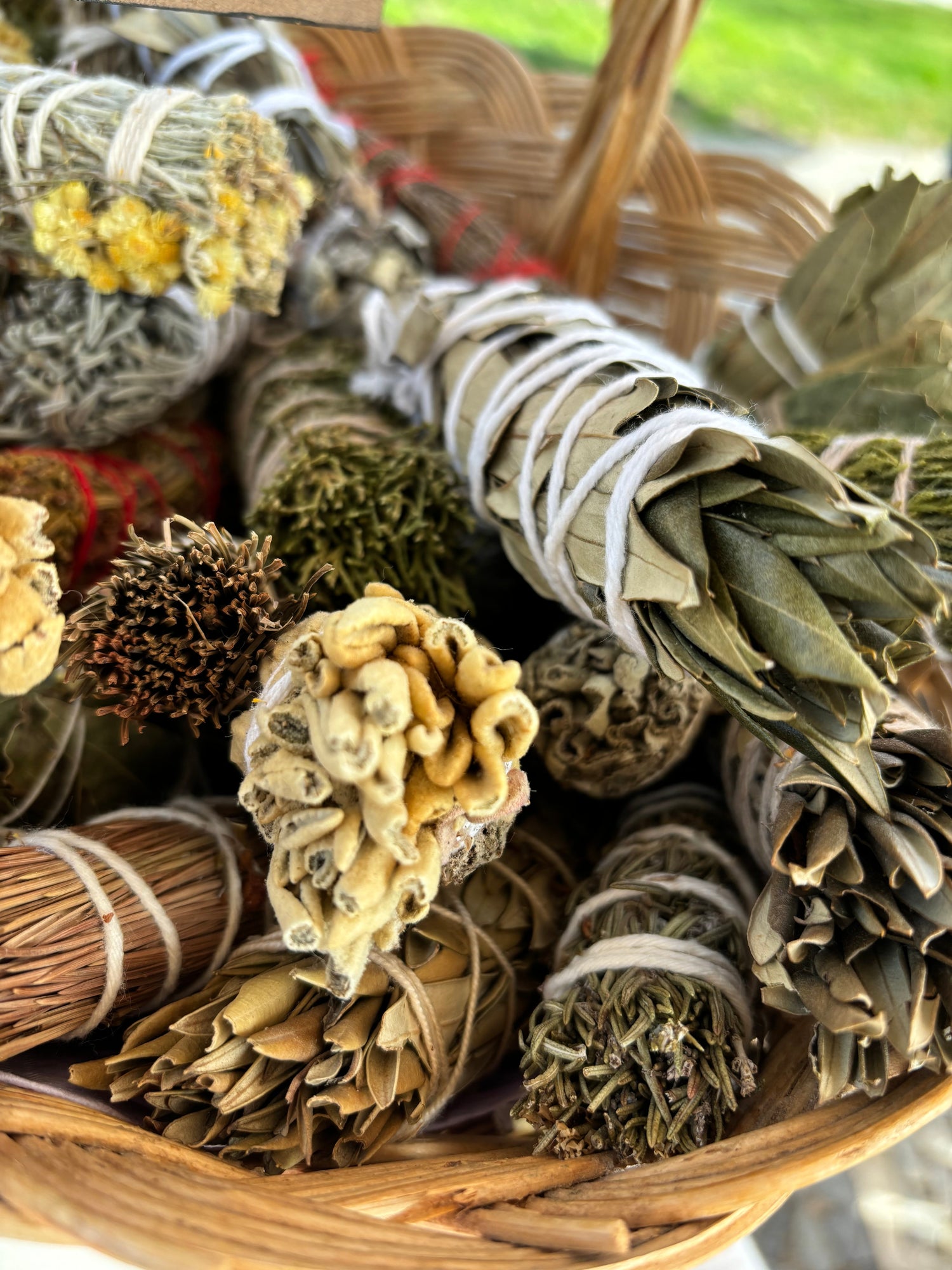 Coleção de bastões de defumação artesanal feitos com ervas naturais como sálvia,...